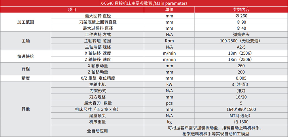 4、主要用于加工各种轴类、盘类零件,适合汽摩、五金、电子、航天、军工等行业类零件进行高效、大批量精密加工。