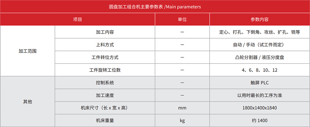 1、根据客户工件生产要求,可开发专用的多工位圆盘加工组合机。